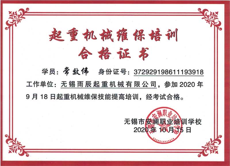 下一篇:起重機械維保培訓(xùn)合格證書-常帥斌